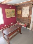 - Hall med skolbänk, griffeltavla och äldre skolplanscher
