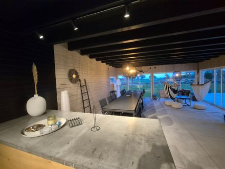 I direkt anslutning finns ett nybyggt uterum och utekök under tak (55 m²) – en perfekt samlingsplats som förlänger både kvällarna och säsongen.