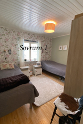 Badplats ligger 200 meter ifrån stugan med badbrygga. Vi har även en mindre roddbåt som man kan få låna om önskemål finns.