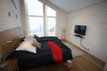 Sovrum 2: dubbelsäng och TV. Panoramafönster.