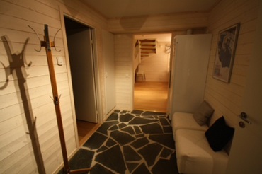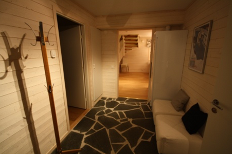 Entréplanet har hall, allrum, kök, ett sovrum och badrum med bastu. På det övre planet finns fyra sovrum och ett badrum.
