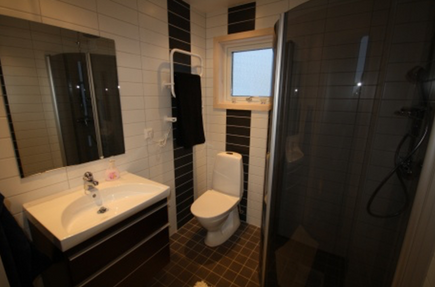 Badrum 1 dusch, wc, bastu. Golvvärme.