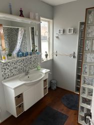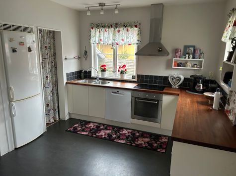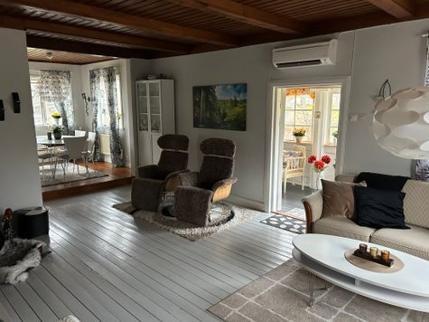 Huset har 6 bäddar fördelat på 3 sovrum med 2 toaletter i anslutning till sovrummen. Bottenvåningen har öppen planlösning med fullutrustat kök med matplats, allrum och toalett med dusch.