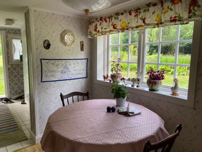 Torpet omfattar ca 80 kvm/plan och har mysiga smårutiga fönster. Bottenplan har öppen planlösning med hall, badrum, kök, matplats, storstuga med utgång till inglasad uteplats där det är mysigt att äta alla måltider. På övre plan finns Sovrum 1, ett stort rum med fransk balkong, dubbelsäng, TV-hörna med soffa och skrivbord. Här finns plats för en barnsäng/resesäng. På övre plan finns även Sovrum 2, ett separat sovrum med två enkelsängar.