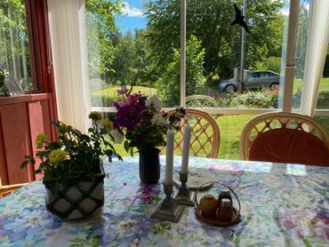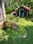 Uteplatser: Det finns två uteplatser med trädgårdsmöbler, en vid garaget och en vid Boden. En mindre uteplats med två kolgrillar finns bakom Torpet.