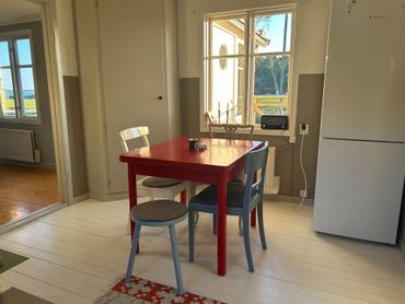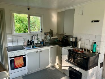 Omgivningar: Här finns bara några hus, kohagar och hav. Lantligt och fridfullt läge, även om det är flera hus i närområdet. Svanesund ligger 4 km bort med bil, och där finns mataffär. (Finns en genväg genom skogen om du vill gå och då är det 2,5 km.) 20 minuters bilfärd bort finns Henån, med bland annat apotek, en riktigt bra fiskaffär, Systembolag och bokhandel. 20 minuter åt andra hållet finns Almö Livs på Tjörn, med stor matbutik och apotek. På både Orust och Tjörn finns mängder av fantastiska utflyktsmål, som badplatser, loppisar, vandringsleder, caféer, restauranger, gårdsbutiker, klassiska små fiskesamhällen och skulpturparken i Pilane. Ön är mysig året om och vi trivs bra här även på vintern. Sommaren är dock vår absoluta favoritårstid här på Orust eftersom sommaren i Bohuslän är magisk.