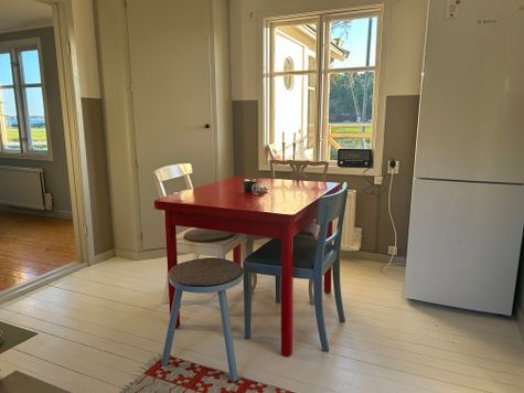 Huset är byggt 1941 med många originaldetaljer bevarade. På första våningen finns fullt utrustat kök (köksbordet har plats för 4 personer men är utdragbart för att rymma fler), vardagsrum, en inglasad veranda, en mindre altan samt badrum med wc, dusch och tvättmaskin. På övervåningen finns sovplats för 3 personer: en dubbelsäng på 160 cm och en enkelsäng på 105 cm. Sängarna står i varsitt rum men du behöver gå förbi enkelsängen för att komma till dubbelsängen. Ingen dörr mellan rummen.
