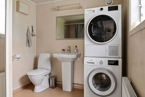 Gästhus (med större altan) med plats för 3 personer. Två sovrum (ingen dörr mellan rummen), där det större rummet har en dubbelsäng och det mindre rummet en enkelsäng (90 cm). Badrum med toalett och handfat.