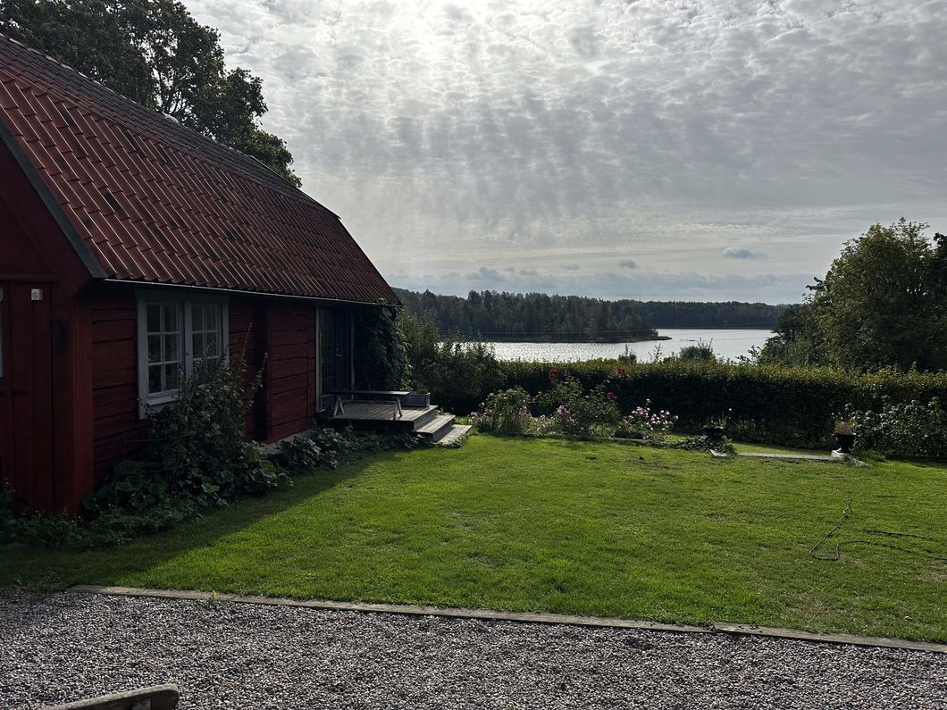 Tomten är stor och lummig med en vacker äppelträdgård, öppna gräsytor och vidsträckta vyer över sjö, fält och skog. Här kan du njuta av morgonsolen vid köksverandan och långa sommarkvällar i det sörmländska landskapet. På gården finns även bastu samt gott om plats för parkering.
