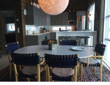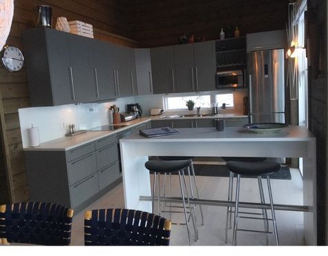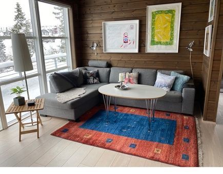 Öppen planlösning med kök, matplats och soffhörna. 4 sovrum: 2 rum med dubbelsängar 180 x 200 cm, 1 rum med dubbelsäng 140 x 200 cm, 1 rum med säng 120 x 200 cm + våningssäng 80 x 200 cm.