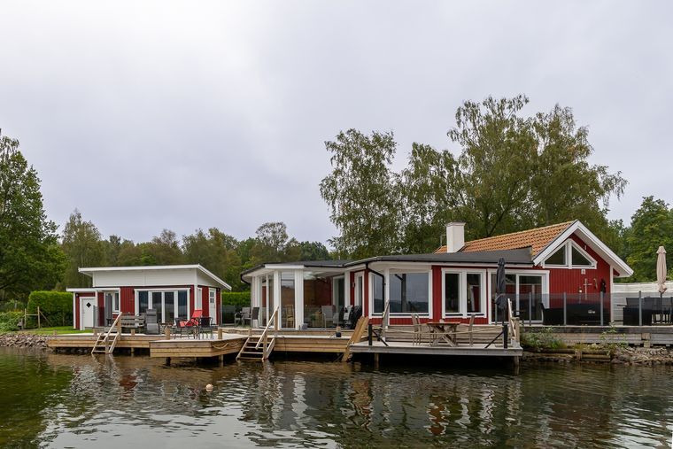 Både huvudbyggnaden och gäststugan har unika lägen nära strandlinjen. Breda öppningsbara