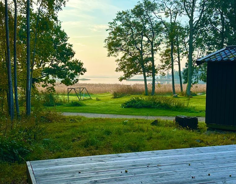 Havsutsikt med möjlighet till bad på privat brygga. Morgonsol på altanen och när till karlslunds marina med restaurang.