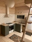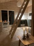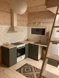 Huset består av 1plan med kök, vardagsrum, toalett/dusch och tvättmaskin. På övre plan som inte är ståhöjd, är loftet där en dubbelsäng(madrass) finns, väldigt mysigt att sova där, viktigt att veta är att till loftet är en brant trappa. Soffan är även bäddbar om man vill.