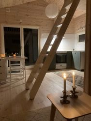 Möjlighet till bad på tillhörande fastighets egna brygga. El och sophantering ingår. Stugan är 25m2 +10m2 loft(sov) på nedre plan med kök, vardagsrum hall i ett. toalett med dusch och tvättmaskin. På övre plan som är ett loft, får 2 personer plats att sova i en dubbelsäng. Soffan på nedre plan är bäddbar. Ett mycket trevligt litet hus för dig eller du och en till. Inga djur eller rökning är tillåtet. Allt är byggt i vit laserad furu. Värms upp av en luftvärmepump. Vi hyr ut detta i väntan på att vår dotter ska flytta ut 1-2 år bort.
