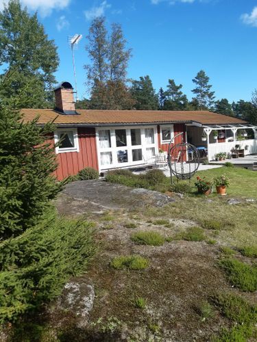 Stuga i bra skick, i omtyckta Nabbo/Rådmansö, uthyres i naturskönt område. Ca 1 timmes bilresa från Stockholm och 20 minuters bilresa från Norrtälje. 65 kvm, 3 rok + 1 gästrum med egen ingång och en friggebod, sammanlagt 8 bäddar. Sänglinne och handdukar medtages. Renoverat duschrum 2020. Kök i anslutning till matplats i vardagsrummet eller till matplats på uteplatsen. Uteplats under tak och dessutom stor fin altan i söderläge och härlig barnvänlig tomt. Grill och grillredskap finns. Bussförbindelse mellan Norrtälje och Nabbo och 1 km promenad till stugan.