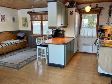 Fastigheten består av ett huvudhus, en gäststuga och ett bastuhus och ni har tillgång till samtliga under uthyrningsperioden. Huvudhuset är i gott skick och har ett normalt utrustat kök, braskamin, tv, wifi, tvättmaskin, vattentoalett & dusch. Huset har ett sovrum och ett sovloft, fördelat på: