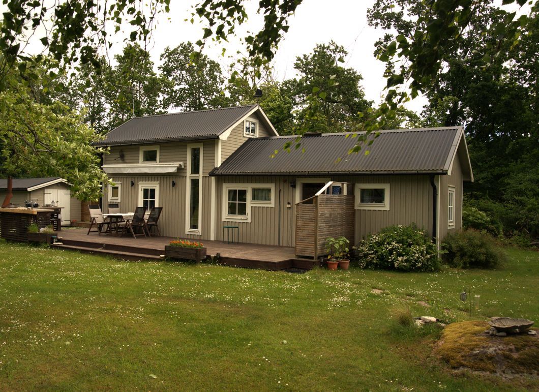 Huset är 50 kvm plus ett sovloft om 7 kvm, belägen på en rymlig tomt med grönska och skog runt omkring. För den som vill utforska området finns cyklar att hyra i den närliggande byn Sandvik.