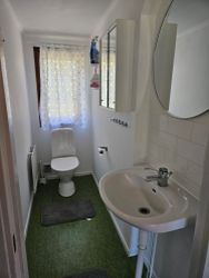 2 toaletter, dusch, bastu. Tvättmaskin.