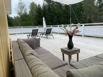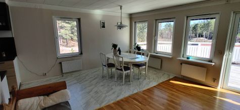 Nyrenoverat hus i Snäckevarp, Gryt. Huset omges av en stor altan med sol från tidig morgon till sen kväll. Det finns internet via fiber och teven är utrustad med Google TV med Chromecast för streaming.