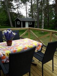 Mysig stuga för 4 personer, uteplats med havsutsikt och trädgård nära Björkhaga semesterby och Visby golfklubb. Stugan ligger 25 min bilfärd från Visby och 5 min från Klintehamn, busshållplats finns precis utanför staketet. En kort promenad söderut hittar ni Koviks pittoreska fiskeläge och kapell med en skyddad badvik. Närmaste restaurang är Björkhaga semesterby (15 min promenad söderut). Efter 20 min promenad norrut hittar ni Västergarns by med restaurang Stelor, Restaurang Kronholmen, Strandvägens café och hamnen med bad och fiskeläge.