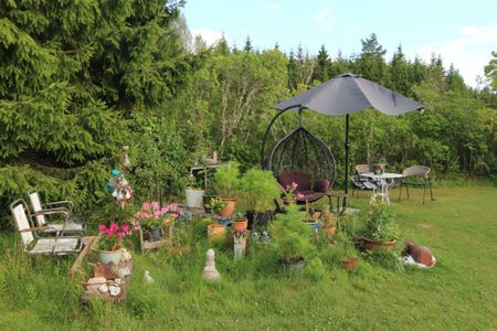 Stugan ägs av en konstnär och det präglar boendet och inredningen. Med en stor härlig gräsmatta och enskilt läge är det perfekt för barnfamiljen eller de som önskar en vistelse nära naturen. Huset har allt man kan önska av komfort, men har sina små ”egenheter”. Ett ljust kök som bjuder in till härliga middagar. I skogen finner ni kantareller och blåbär i mängder.