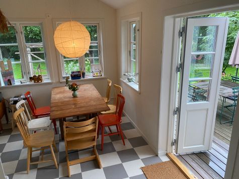 Det finns spel och böcker för både barn och vuxna att låna under vistelsen. Blommor och örter i trädgården får gärna plockas i utbyte mot att hjälpa till med vattning under varma veckor.