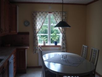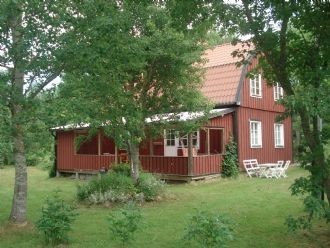 kök och ett badrum m WC och dusch samt en extra WC. Stor altan och trädgård med plats för badminton och lekar samt sandlåda och en liten gunga i äppelträdet. Wi-fi.