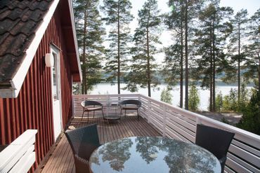 Stugan har två sovrum. Det ena med dubbelsäng, det andra med våningssäng beläget på andra våningen med stor altan och vacker utsikt.Tillgång till enklare extrasäng finns.