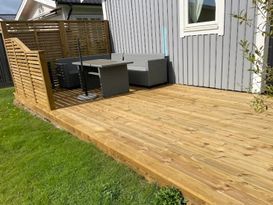 Marklägenhet med egen ingång. Uteplats med trädgårdsmöbler och tillgång till grill och trädgård. 1 s...