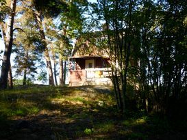 Ett charmigt timmerhus på en stor naturtomt omringad av skogen fullt av hallonbuskar och blåbär. Vill ni plocka svamp finns en hel skog att plocka ...