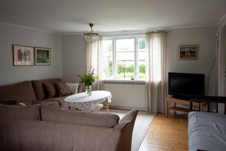 Huset består av många stora rum med totalt 10 bäddplatser, 2 toaletter, dusch, badkar, välutrustat kök och tvättstuga. Glasveranda, balkong och utemöbler + grill. I trädgården finns mycket utrymme för lek och möjlighet att plocka bär. Plocka fram en frisbee eller spela en omgång krocket.