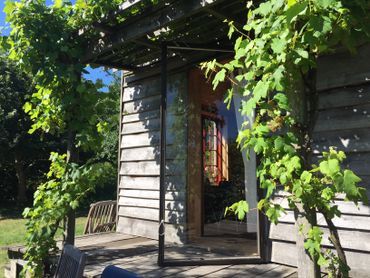 Fyra utgångar till trädgården och ett trädäck gör att huset upplevs större och
