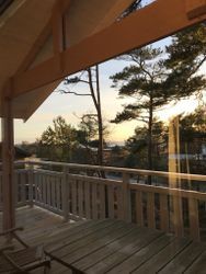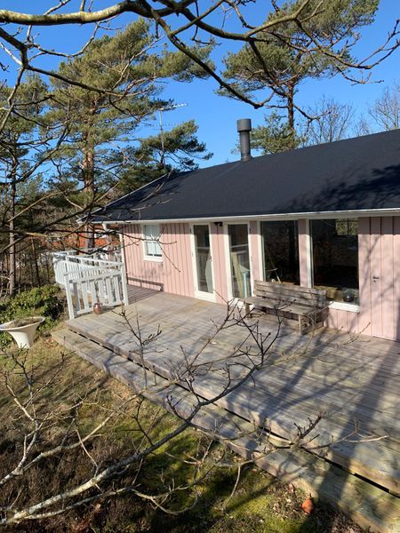 Strandnära stuga vid Stensjö/Glassvik naturreservat. Nära till härliga bad från klippor eller sandstrand. Promenadstigar i naturreservat. Terrass och balkong med havsutsikt. Vardagsrum, 2 sovrum och säng i avskild del av vardagsrum. Nytt kök med sedvanlig utrustning inklusive frys och diskmaskin. Helkaklat badrum. Bastu och tvättmaskin.