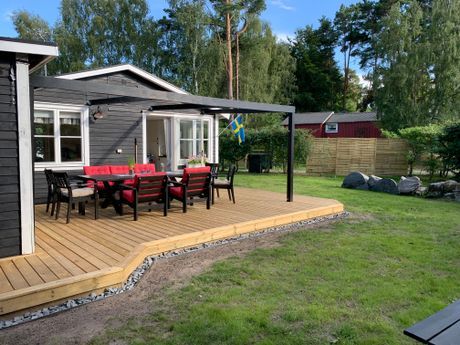 NYHET: Fullutrustat Attefalls-hus (30 kvm) med 4-6 sovplatser som kan hyras mot separat avgift (nybyggt 2022)