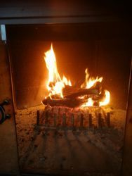 I allrummet finns också öppen spis, rymlig bäddsoffa ( plats för 2 sovande ), 2 fåtöljer, ett litet bord, TV.
