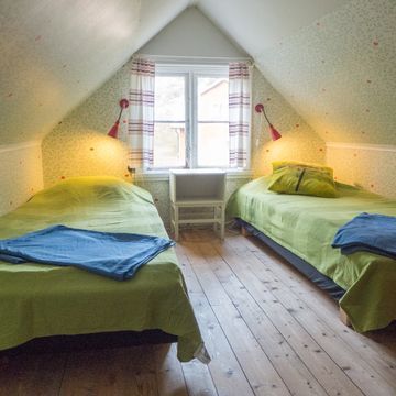 Huset har fyra rum och kök med 5 bäddar fördelade på tre sovrum. På nedervåningen finns kök med kyl/frys, spis, mikrovågsugn samt kaffebryggare. Allrum med matplats, soffgrupp samt TV. Sovrum med två sängar samt toalett. På loftet finns ytterligare två sovrum, lämpliga för barn, med sammanlagt tre sängar.