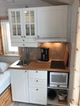 Stugan har 1 rum med en liten köksdel samt matplats. Spis, kyl, frys och micro.