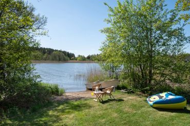 Hela stugan är mysigt och fint möblerad. Den inbyggda verandan i huset ligger 10 meter från vattnet och ger en underbar stämning.