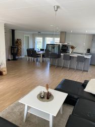 Huset har en öppen planlösning med sina 122m² fördelat på tre sovrum med plats för 6 sängplatser beroende på ert behov. Det finns två toaletter varav ett badrum, vardagsrum, kök med full utrustning och diskmaskin, tvättstuga med tvättmaskin och torktumlare.