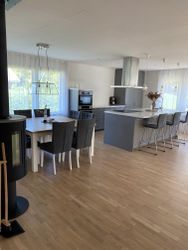 Allt som allt finns det 6 sovplatser inne i huset och ytterligare 4 i garaget.