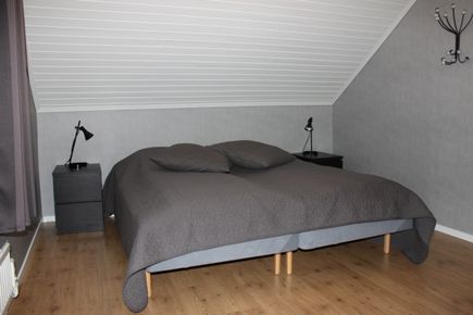 Loftet renoverat vintern 22/23. Består nu av ett rum med två 90x200 cm och en 80x190 cm säng. En öppen hall med två 90x200 cm sängar och en extrasäng.