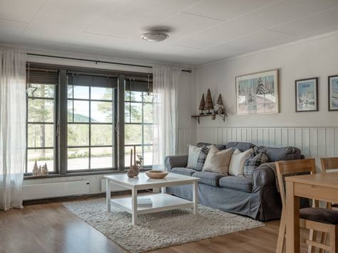 Ljus och trivsam lägenhet i markplan om 65 kvm i Röda byn. Ski in - ski out. Lägenheten har allrum med sittgrupp och TV.