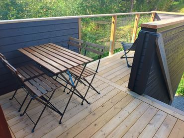 Allrum med köksavdelning, 1 Soffa. 1 Fotölj. TV. Möblerad takad balkong i söderläge med utsikt mot Renfjället. Nybyggd möblerad terrass vid entrén med sol både dag och kväll sommartid, samt sol em och kväll på vårvintern. Utsikt mot Åreskutan. Hall med torkskåp och bra förvaring. Låsbart skidförråd vid entrén, 1 st P-plats.