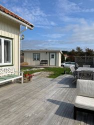Huset ligger i hamnen i den gamla delen av Rönnängs samhälle. Inom promenadavstånd (1,2 km) ligger Kåreviks badplats med Tjörns finaste badstrand som erbjuder stor barnvänlig sandstrand såväl som klippor och hopptorn. Behöver du komplettera grillningen på den soliga uteplatsen finns matbutiken ca 800 meter från huset. Vill barnen fiska krabbor finns brygga med sjöbodar i hamnen bara några meter bort och bredvid huset finns också en allmän gräsmatta som lämpar sig för bollekar.