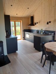 Köket är modernt och utrustat med induktionshäll, ugn, kyl/frys, mikrovågsugn och en diskmaskin.
