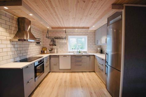 Kök: Välutrustat kök med induktionshäll, ugn, micro, diskmaskin och kyl och frys. Stort bord med sittplatser för minst 8 personer.