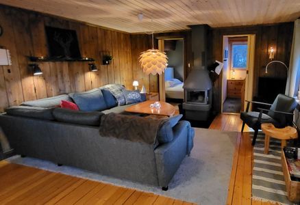 Storstugan rymmer kök (ej diskmaskin - vilket också framgår av "Bekvämligheter - köksutrustning"), matplats, kamin, soffgrupp, tv med grundutbud kanaler samt Netflix, dvd. Parkeringen rymmer 3 bilar. Uttag för motorvärmare finns. Altanen är belägen i sydväst och från den stora naturtomten är det vy över Storhogna, Varggransfjället och Vemdalsskalet. Tillgängligt fiber med Wifi-anslutning i stugan med ett s.k. fritidshusabonnemang som standard 2 Mbit. Som gäst kan man själv bekosta extra surf via globalconnect.