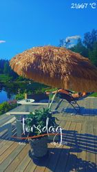 Välkomna till oss Vi erbjuder er att bo i vår gäst stuga. Stugan har sovrum, tv rum, badrum, bastu, kök ballkong mot sjön å kvällssol.