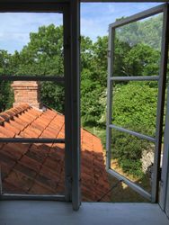 Körsbärsgården med konstgalleri och café, knappt en 1 km bort. Båda ligger söderut från skolan.