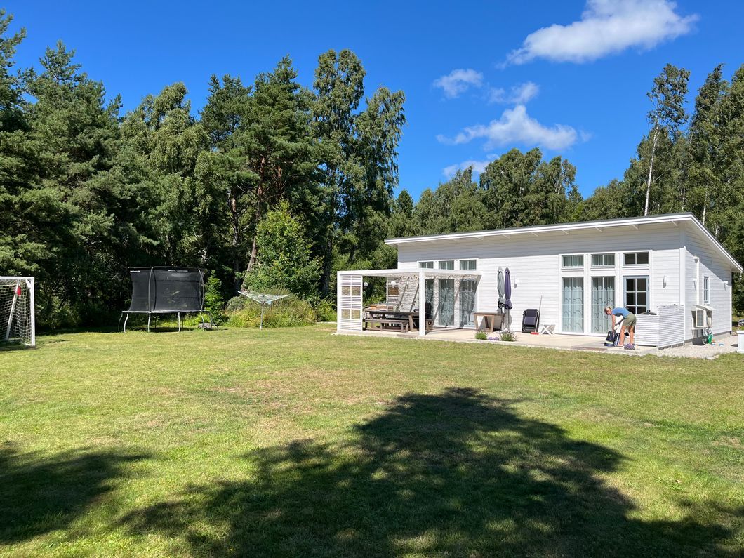 Huset ligger på en underbar tomt, har stor terrass med solläge och stor trädgård. Bra rymlig parkering. Perfekt för barnfamilj eller golfgänget. 5/5 omdömen på Airbnb.
